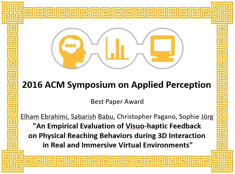 Best Paper Award: ACM Symposium on Applied Perception 2016