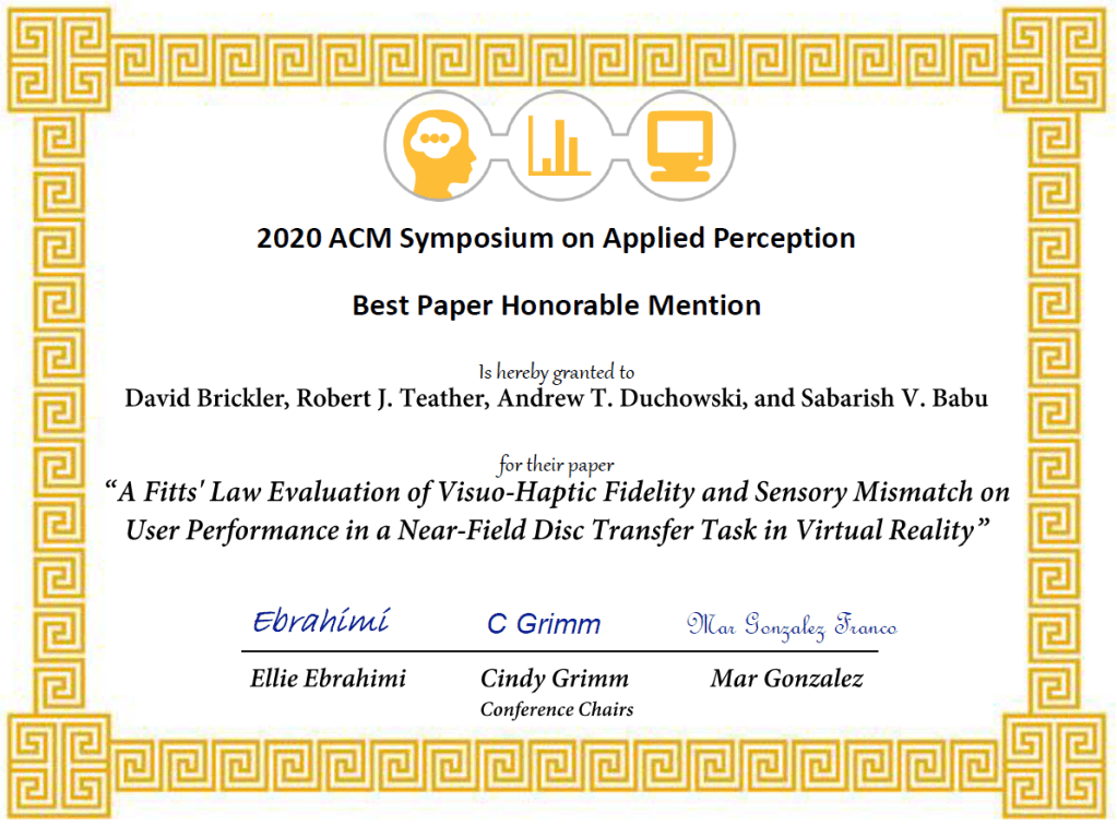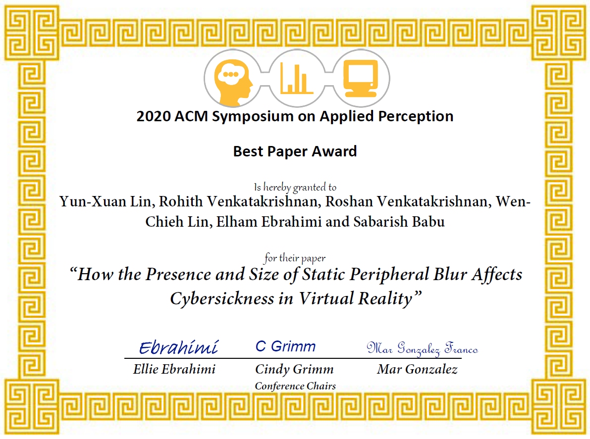 Best Paper Award: ACM Symposium on Applied Perception 2020