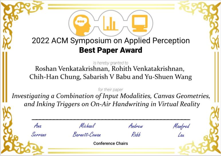 Best Paper Award: ACM Symposium on Applied Perception 2022