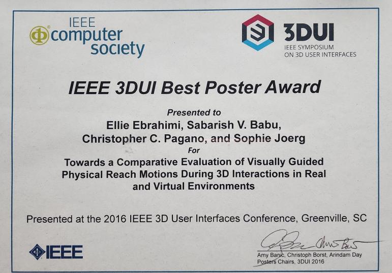 Best Poster Award: IEEE International Symposium on 3D User Interfaces 2016