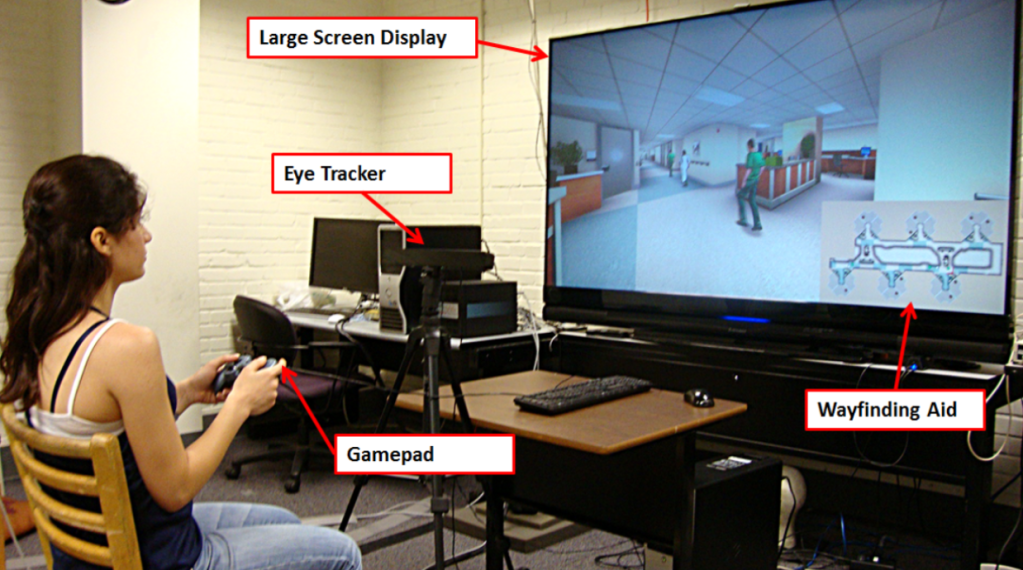 Bertrand, J.W., Ebrahimi, E., Wachter, A., Luo, J., Babu, S.V., Duchowski, A.T., Meehan, N. and Gramopadhye, A.K., 2013, December. Visual Attention to Wayfinding Aids in Virtual Environments. In EGVE/EuroVR (pp. 9-16).
