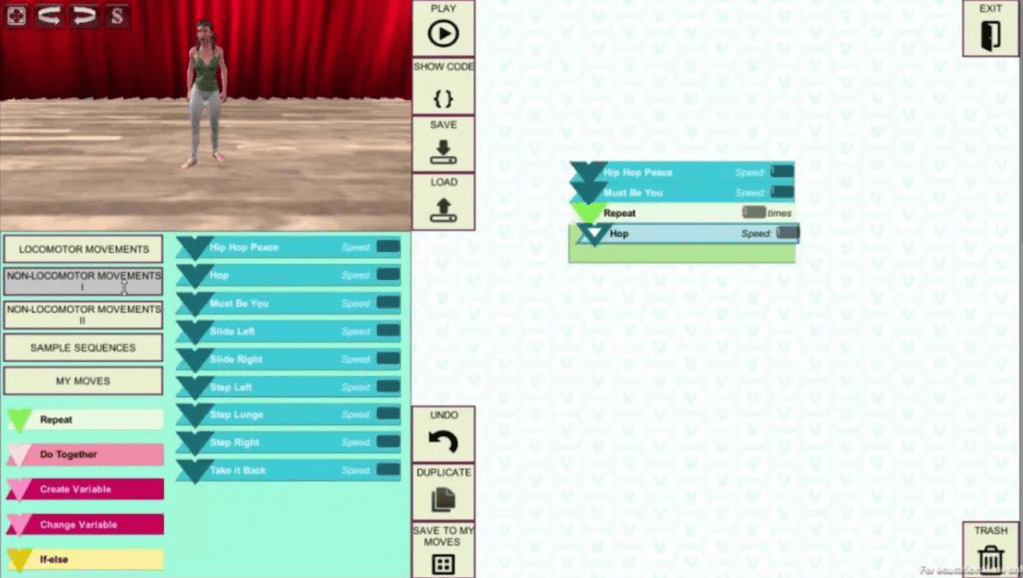 Leonard, A.E., Daily, S.B., Jörg, S. and Babu, S.V., 2021. Coding moves: Design and research of teaching computational thinking through dance choreography and virtual interactions. Journal of Research on Technology in Education, 53(2), pp.159-177.